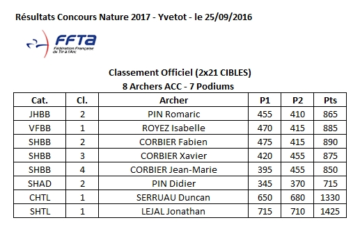 1 Démarrage de saison de Tir Nature sur "les chapeaux de roue" pour les 8 Archers de l'ACC présents ce WE du 25/09 à YVETOT (76), avec 7 podiums réalisés sur 1 premier parcours des Yvetotais jugé Technique ...