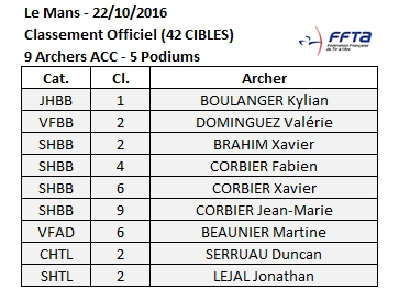 Résultat du Tir Nature du Mans, dans un froid glacial en matinée, les Archers de l'ACC représentaient l'Archerie de Conches en Pays de Loire avec 5 podiums en Nature & 4 en 3D !