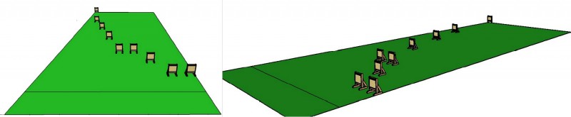 Une neuvième cible sera implantée, et l'ensemble sera agencé suivant le schéma ci-dessous pour le confort et la sécurité de Tous, lors de notre sortie en extérieur qui interviendra sur avril prochain.