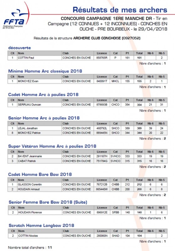 11 Archers Conchois - 5 Titres de Champion - 4 Vice-Champion - 1 Bronze